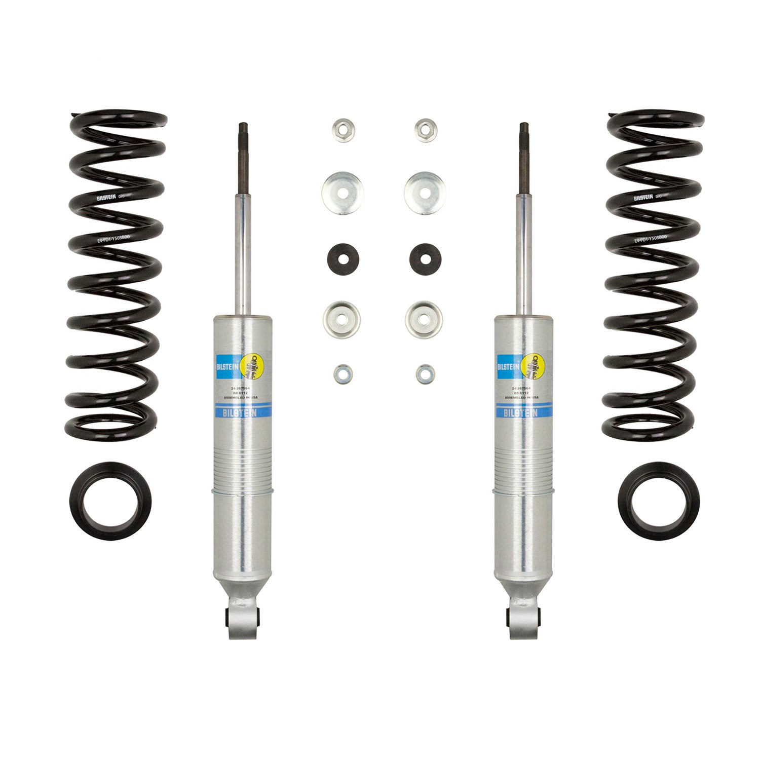 Bilstein B8 6112 leveling kits are designed to provide more ground clearance, allow for larger tires, and increase wheel travel. Multiple snap-ring grooves in the body allow for different spring seat positions, providing 0-2.75 inches of front lift (depending on application). These kits consist of (2) 60mm shock absorbers combined with (2) custom matched cold wound coil springs and (2) billet aluminum spring seats. The large 60mm digressive piston allows for increased damping control for optimal on-road and off-road capabilities. Experience the legendary Bilstein off-road experience with the best direct fit spring and shock kit for your light truck or SUV.