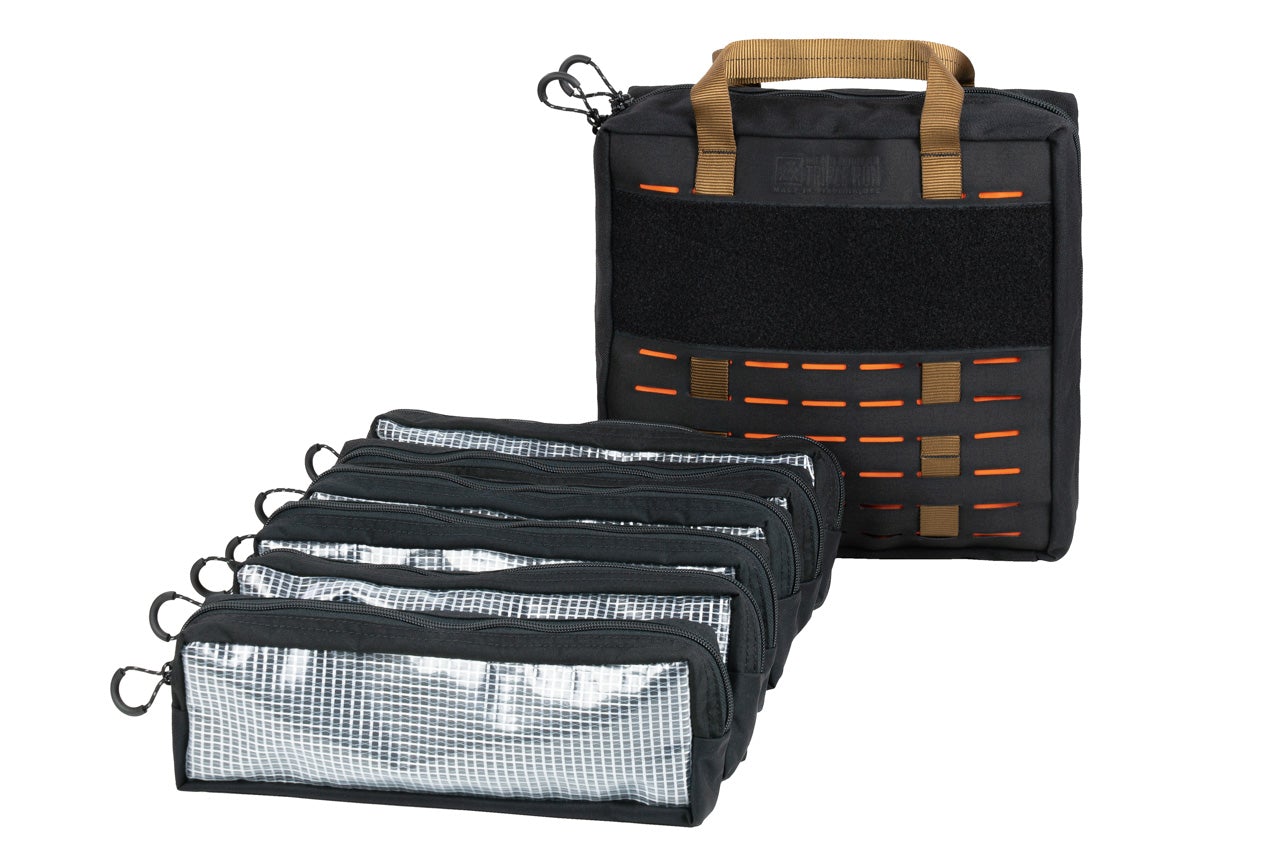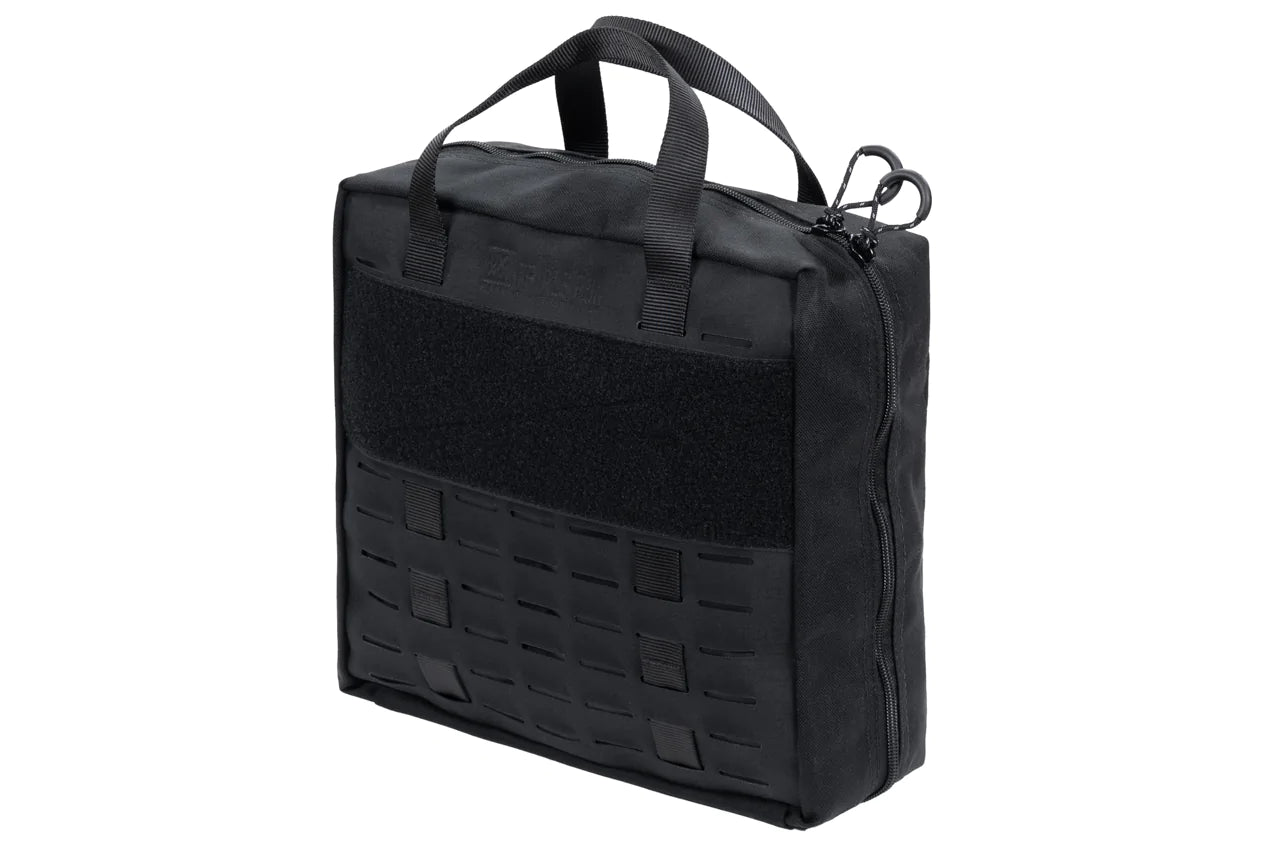 Our newest generation of tool storage features extra-tough 1000D Cordura fabric and integrated handles. This bag has a MOLLE-compatible ladder system front; cut from a single piece of double-layer Squadron fabric. We've also added a sleek-looking, hi-vis orange layer beneath the MOLLE Panel.