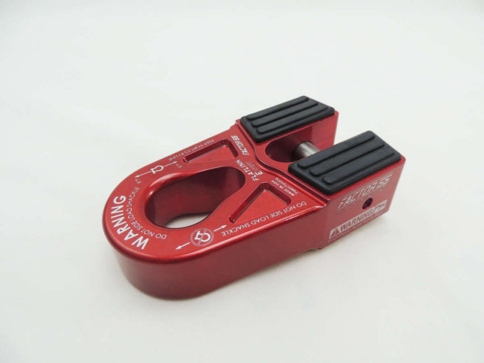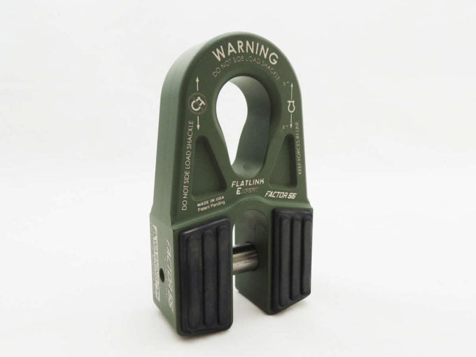 The FlatLink E (Expert) is a variation of our popular foldable standard FlatLink winch shackle mount. The FlatLink E provides a means to eliminate the conventional winch hook and replace it with a safer and more secure screw pin shackle resulting in a CLOSED SYSTEM WINCHING operation. The large pear shaped shackle mounting hole allows for attachment to either the pin or bow end of common screw pin shackles, as well as common OEM recovery points.