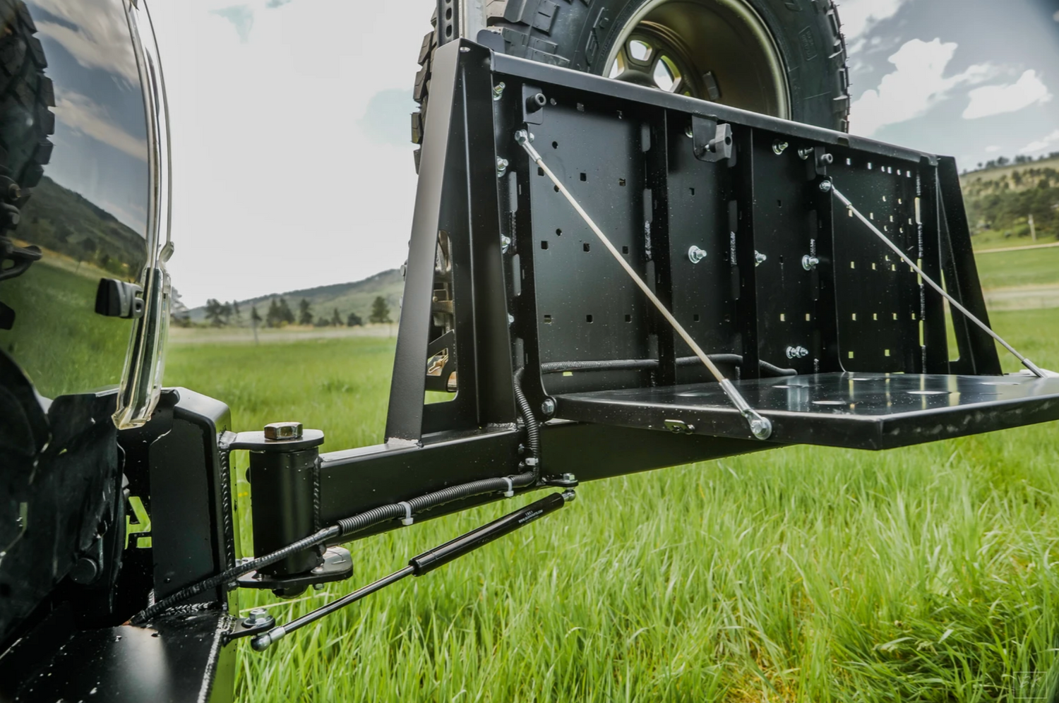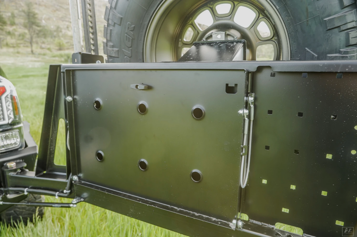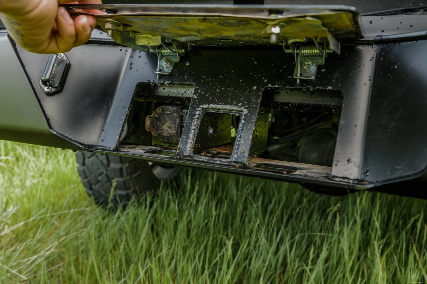 - License plate flips up for access to the receiver hitch and trailer wiring connection.
