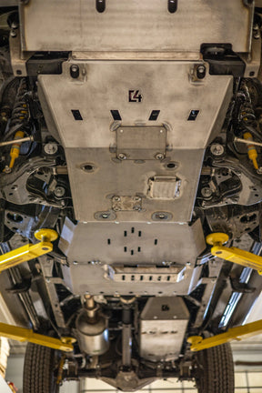 • Three separate skid plates that bolt together to protect the engine, transmission, and transfer case