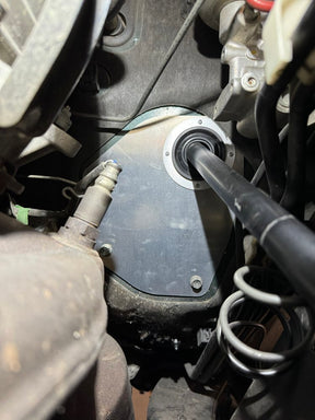 Made to pair with our solid axle kit, our steering shaft kit mounts to your factory steering column on one end and the Toyota IFS steering box on the other. Installing this requires notching the corner of your steering column opening for the shaft to clear so we provide a replacement firewall seal plate with with a seal going around the steering shaft.