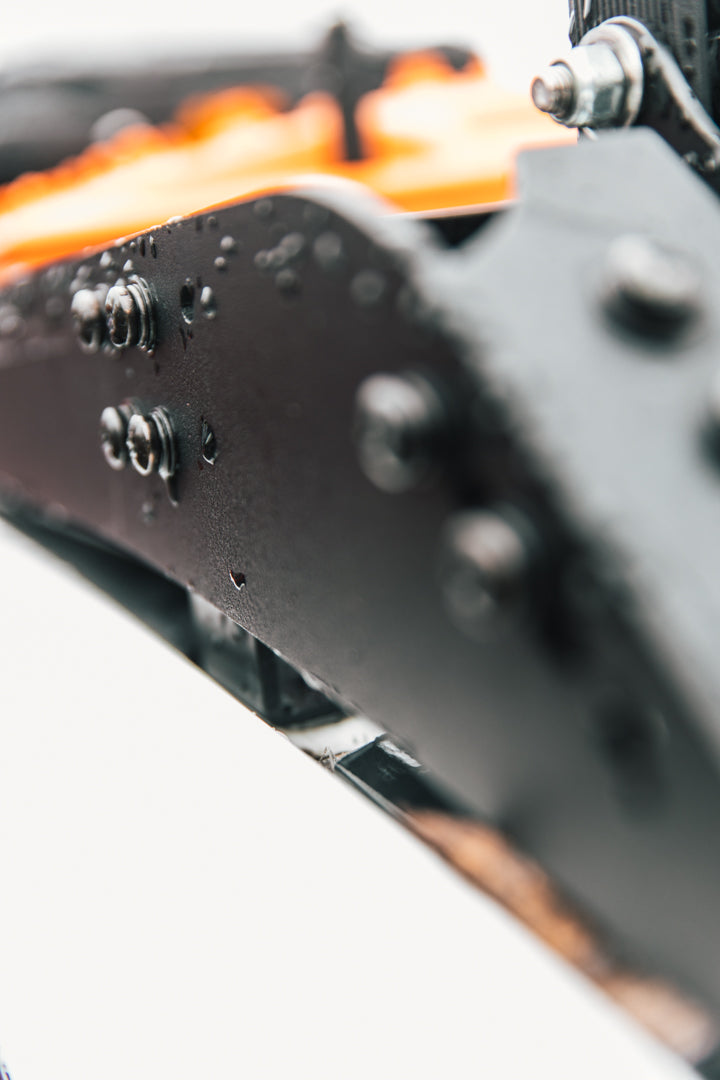 The crossbars are made from a 1" x 2" aluminum extrusion that have 2 top facing T-slot channel, a fore and aft channel and 2 bottom facing channels. This offers numerous solutions for tie down options, cargo security, and the addition of accessories such as tool mounts or lighting. The rack comes shipped in a black powder coat and black anodized crossbars. All assembly hardware comes in a black zinc finish so as to match a black paint or powder coat finish on the final product. All mounting hardware is either stainless steel or high quality zinc plated. The rack also includes a 1/8" 5052 aluminum plate wind deflector to help with aerodynamics and prevent wind noise.