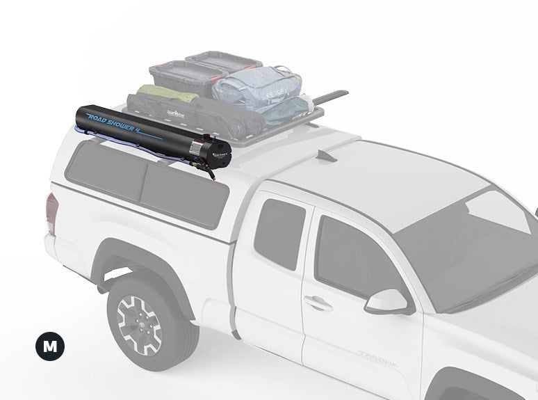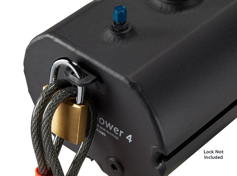 - Integrated lock loops allow you to lock RoadShower to your roof rack.